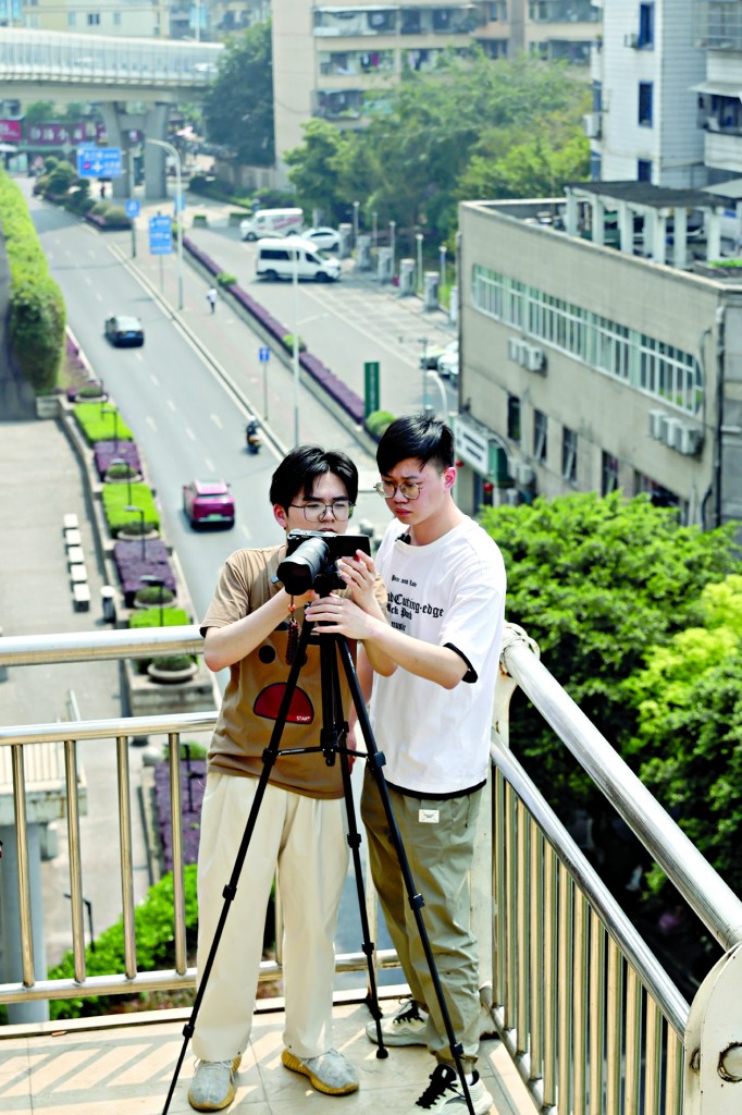 “Action!”刘恩帝举着云台后退时,张朝清在后面扶着他的腰,镜头对准黄家隆:“这里是几江长江大桥,连接了几江老城区与滨江新城,是江津中心城区南北同城发展的‘脊梁’。”刘恩帝和张朝清是黄家隆的室友,也是和他同一批分配到江津的西部计划志愿者。三个人都有同样的兴趣,摄影、拍视频。