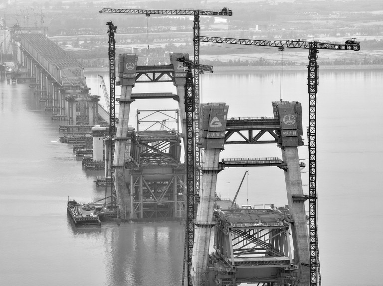 目前,由中铁大桥局承建的崇启公铁长江大桥南、北主塔进入施工冲刺阶段,500余名建设者奋战在作业现场。据悉,大桥总体施工进度已完成三分之二。