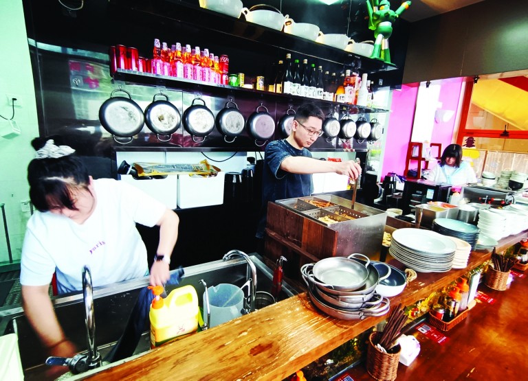 本报讯 早上9点一到店,熬高汤、切萝卜、炸豆腐……95后宋云云就和男友段智洋一起忙碌起来。中午11点半,档口摆开,一切准备就绪,另一个店员王彩霞也到岗了。这是一家由3个听力残障人士撑起来的“无声”餐饮店。