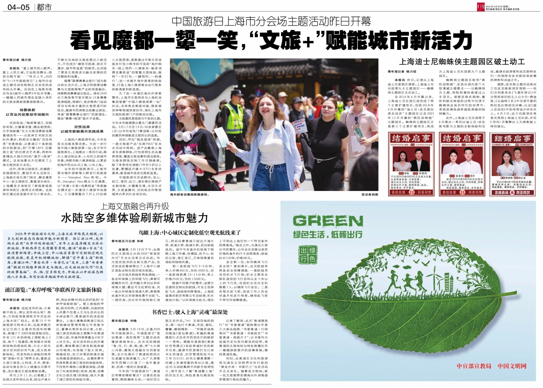 - 看见魔都一颦一笑,“文旅+”赋能城市新活力 青年报记者 杨力佳 本报讯 “爱上城市的心跳声,爱上人民之城,它会给你舞台,给你无限可能……”昨天上午,2025年“5·19中国旅游日”上海市分会场主题活动在刚刚正式启用的龙华码头