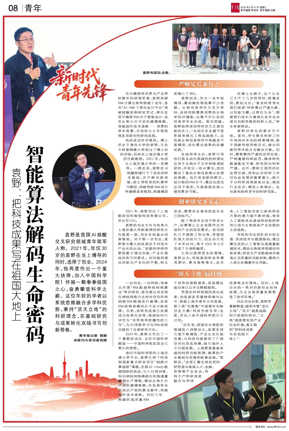 青年报青年 A08智能算法解码生命密码 记者 郭颖2025-05-27 2 2025年05月27日 星期二