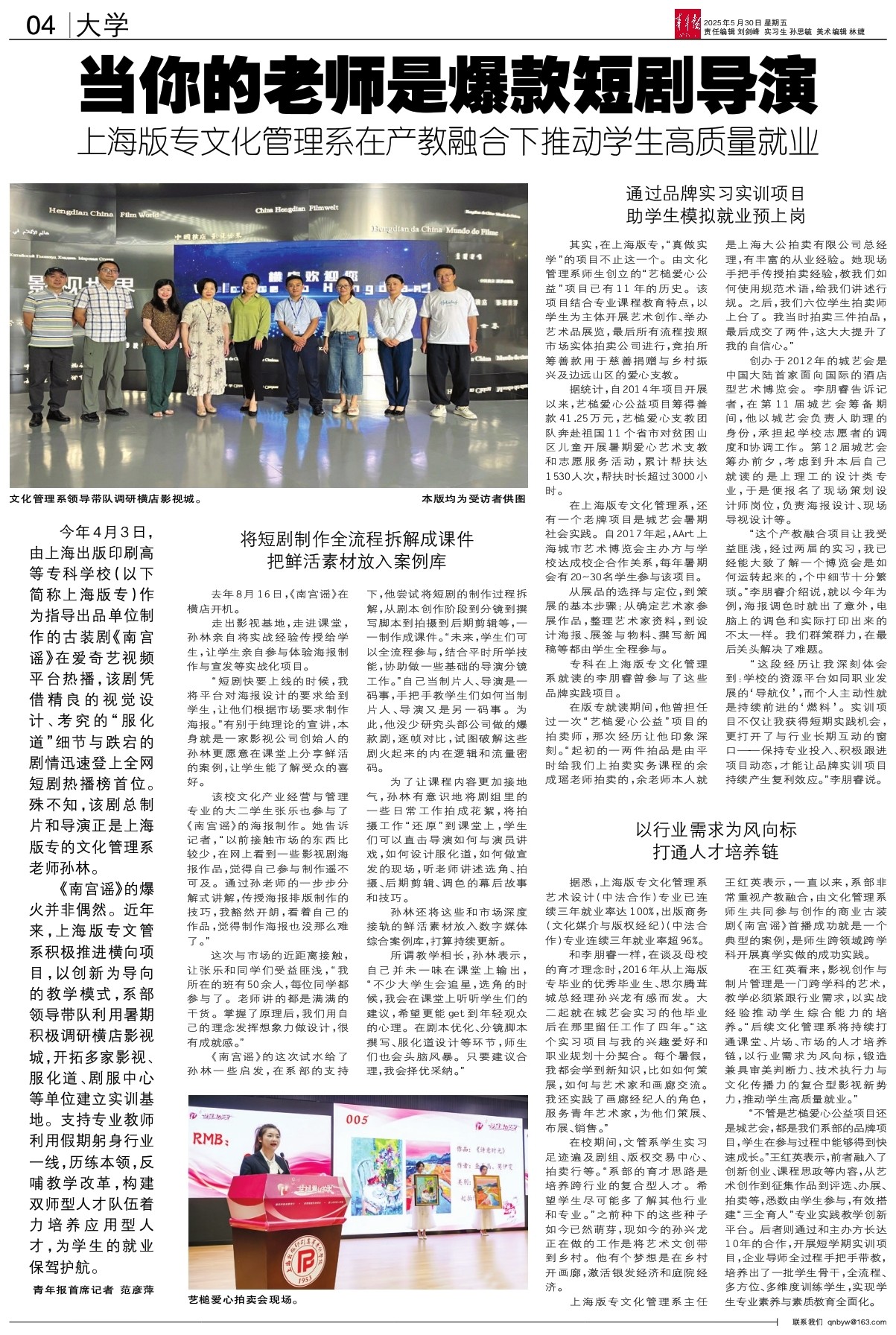 今年4月3日,由上海出版印刷高等专科学校(以下简称上海版专)作为指导出品单位制作的古装剧《南宫谣》在爱奇艺视频平台热播,该剧凭借精良的视觉设计、考究的“服化道”细节与跌宕的剧情迅速登上全网短