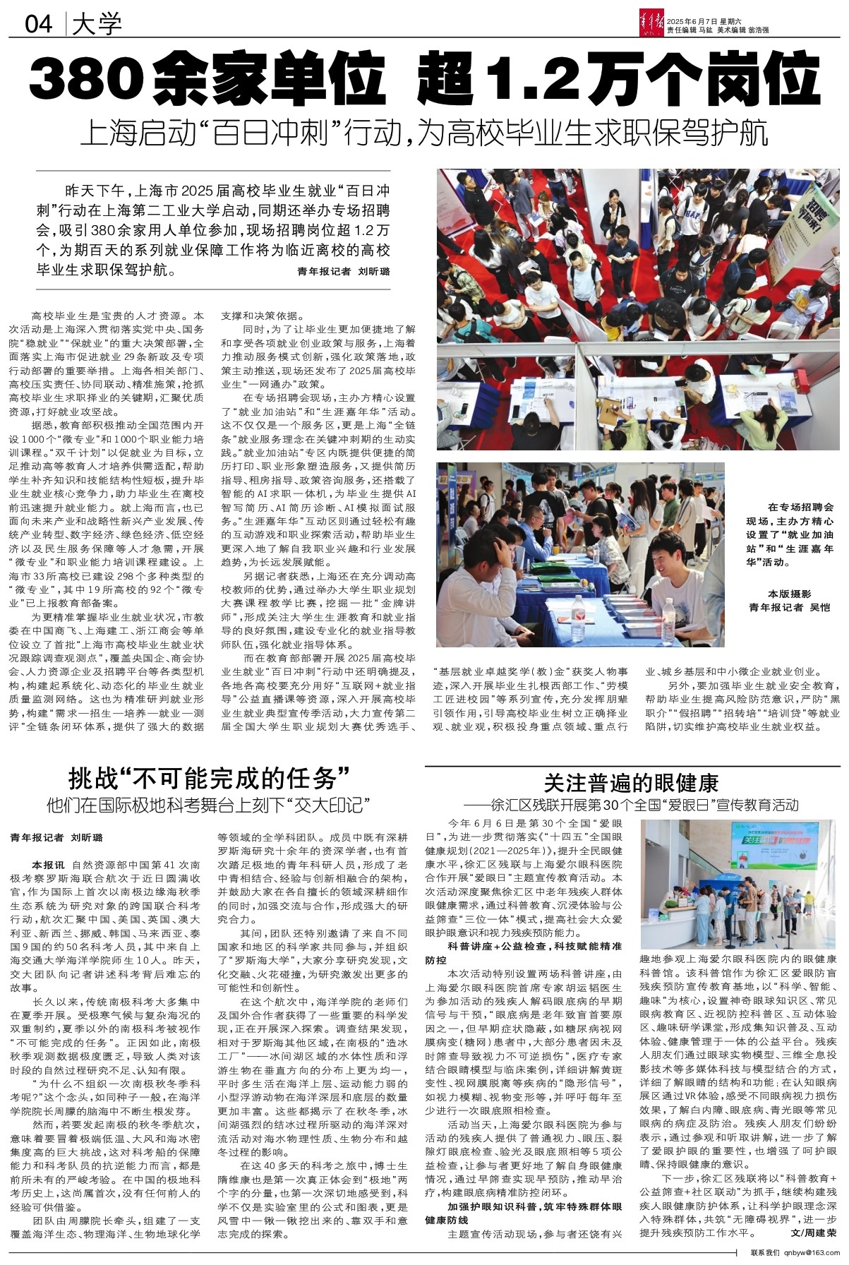 - 380余家单位 超1.2万个岗位 昨天下午,上海市2025届高校毕业生就业“百日冲刺”行动在上海第二工业大学启动,同期还举办专场招聘会,吸引380余家用人单位参加,现场招聘岗位超1.2万个,为期百天的系列就业保障工作将为临近