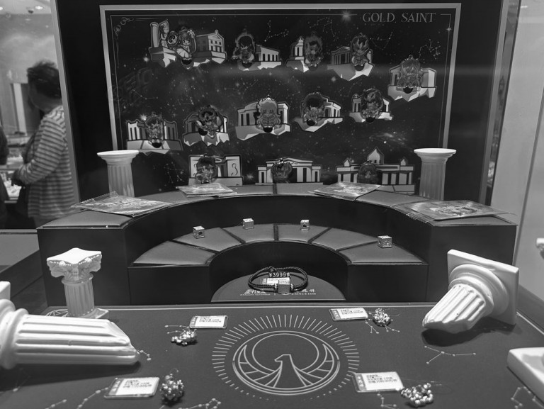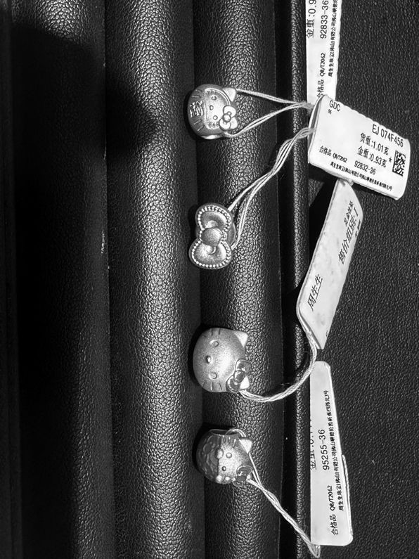 记者走访环球港及豫园商圈多家金店发现,不同品牌各有所好,联名款多以转运珠与吊坠为主,采用硬金工艺打造,中心常作镂空处理。周大福与迪士尼的合作,带来了史迪奇、三眼仔、草莓熊、米奇、维尼熊等卡通形象的黄金小件,标价多在2000元左右。周生生则与三丽鸥、迪士尼合作,Hello Kitty(凯蒂猫)与白雪公主的足金转运珠,价格区间在2500元至3000元。老牌金店老凤祥,则将目光投向《圣斗士星矢》《机动战士高达》与《星穹铁道》,推出黄金圣衣转运珠、挂坠、金片乃至黄金手办。一套12件的黄金圣衣转运珠与挂坠,单价(含工费)分别为3999元与3580元,而一件重达88克的黄金手办,标价更是高达11万元。