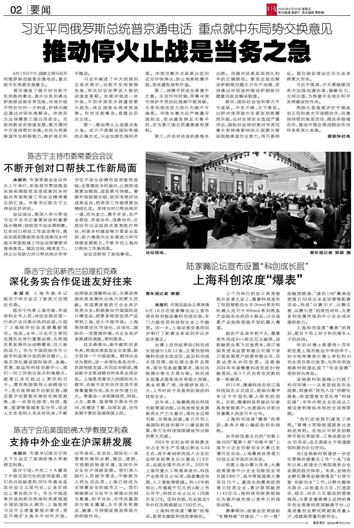 - 推动停火止战是当务之急 6月19日下午,国家主席习近平同俄罗斯总统普京通电话,重点就中东局势交换意见。 普京通报了俄方对当前中东局势的看法,表示以色列袭击伊朗核设施非常危险,冲突升级不符合任何一方利益,伊