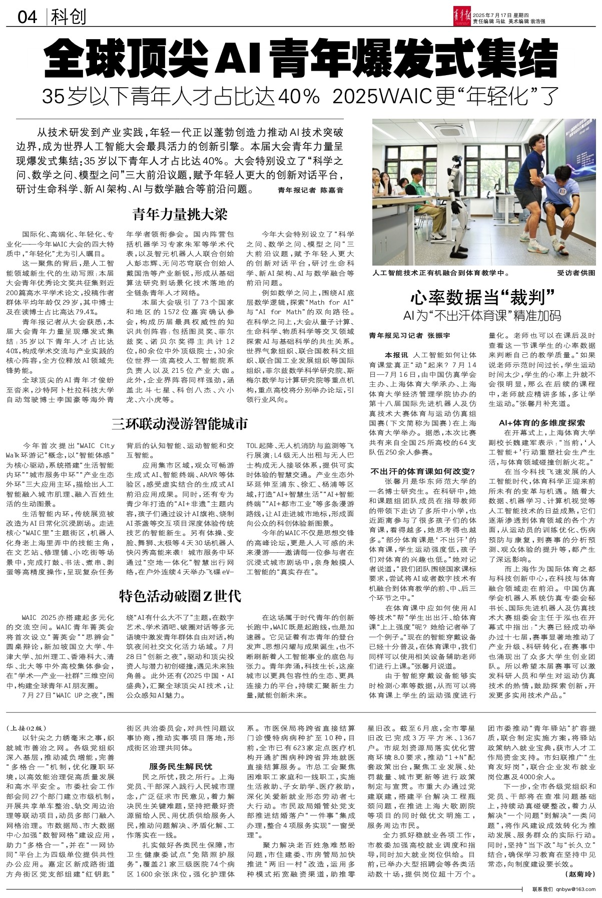 青年报记者从大会获悉,本届大会青年力量呈现爆发式集结:35岁以下青年人才占比达40%,构成学术交流与产业实践的核心阵容,全方位释放AI领域先锋势能。