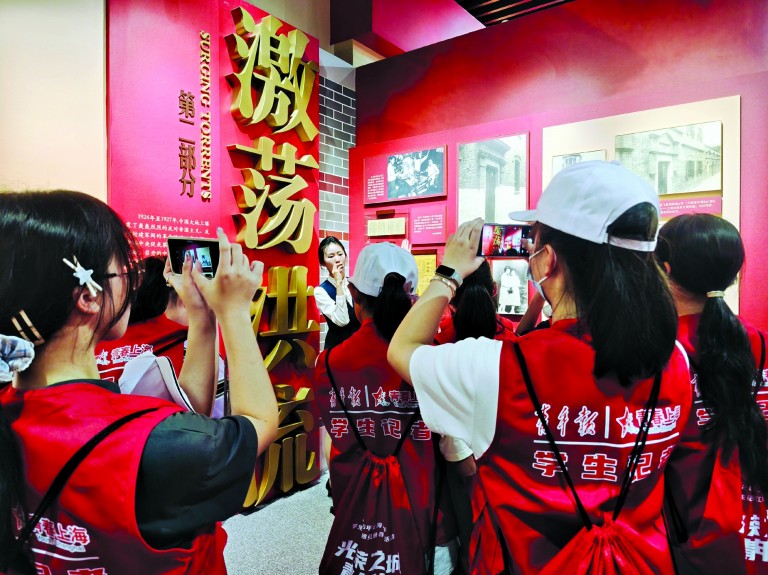 中共四大纪念馆内,上海市洋泾菊园实验学校的莫亚曾同学边拍边记:“石库门被称为‘中西合璧的红色会客厅’,今天的活动让我收获了新的知识,第一次把石库门这个上海特色建筑和红色革命故事连接在了一起。”浦东新区青少年活动中心带团老师表示:“同学们以学生记者的身份走进红色场馆,新身份、新视角为他们学习和传承红色文化打开了一扇新的窗。同时,活动也给同学们带来很多灵感,他们已经在构思红色微电影脚本,用童声叩开更多红色场馆大门。”