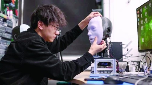 在青年科学家思辨沙龙上,他表示:“大型语言模型解决了机器人语言交流的问题,但非语言交流仍是一片荒原。”胡宇航的创业项目直指人形机器人最难啃的骨头之一:表情。他创立的“首形科技”团队仅17人,却汇聚罕见跨界组合:央美和北电的艺术生、哥大计算机极客、嵌入式工程师、化学材料专家、三维建模师……他们戏称在打造机器人“灵魂与肉体”。