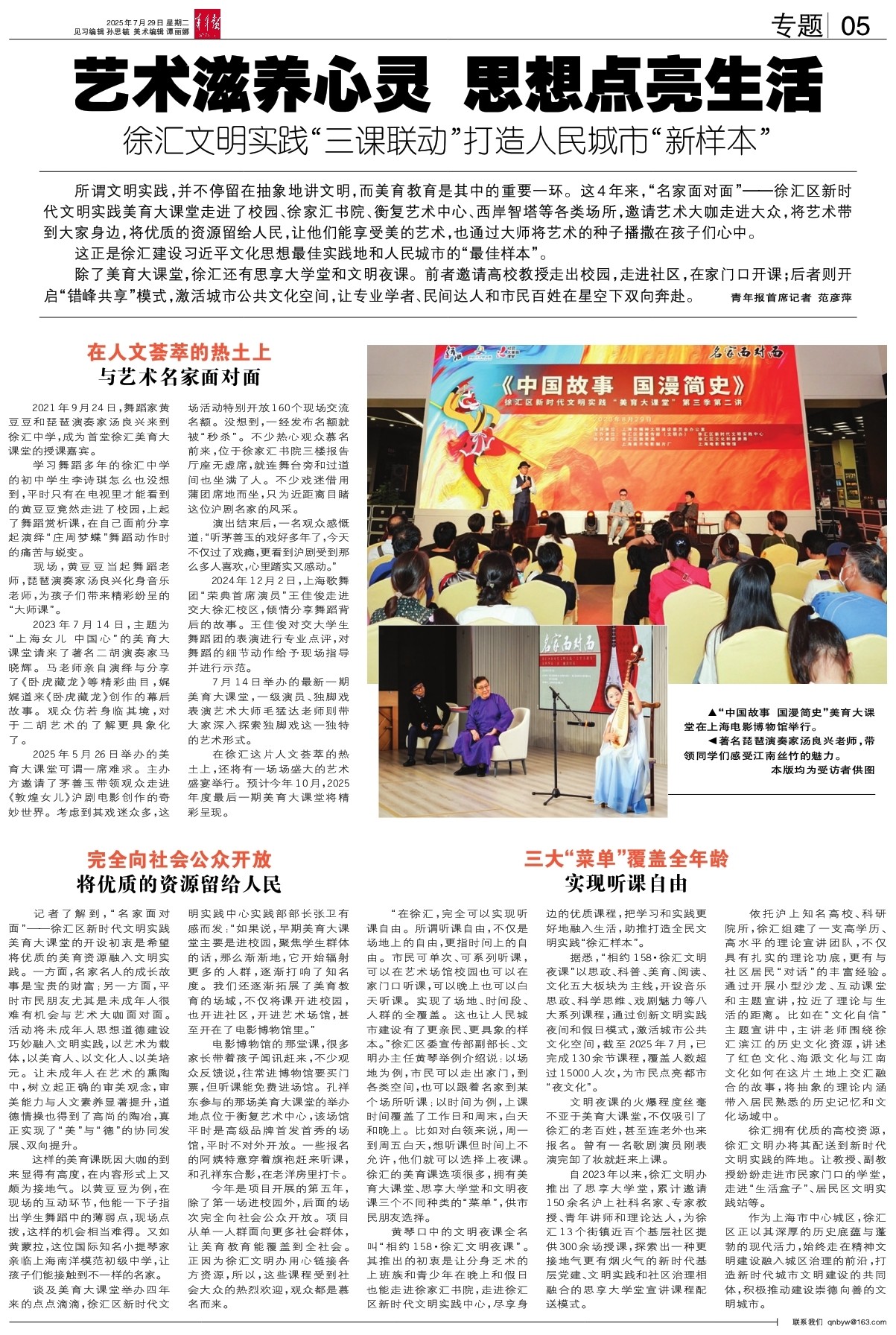在徐汇这片人文荟萃的热土上,还将有一场场盛大的艺术盛宴举行。预计今年10月,2025年度最后一期美育大课堂将精彩呈现。