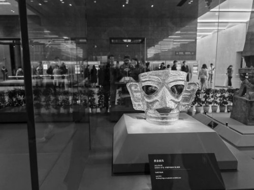 懂行的网友在线上留言,每每让“才浅”感动,而上海这座城市在线下给他的鼓励,更是让他终生难忘。去年,“星耀中国:三星堆·金沙古蜀文明展”在上海博物馆(东馆)开幕。作为上博东馆的开馆大展,展览的分量不言而喻。在入馆大厅最醒目的位置,摆放的正是“才浅”一锤一锤敲出来的黄金面具复刻品。往来观众无不驻足,举起手机拍摄记录,展品一旁的卡片清晰标注着:bilibili UP主“才疏学浅的才浅”制作。