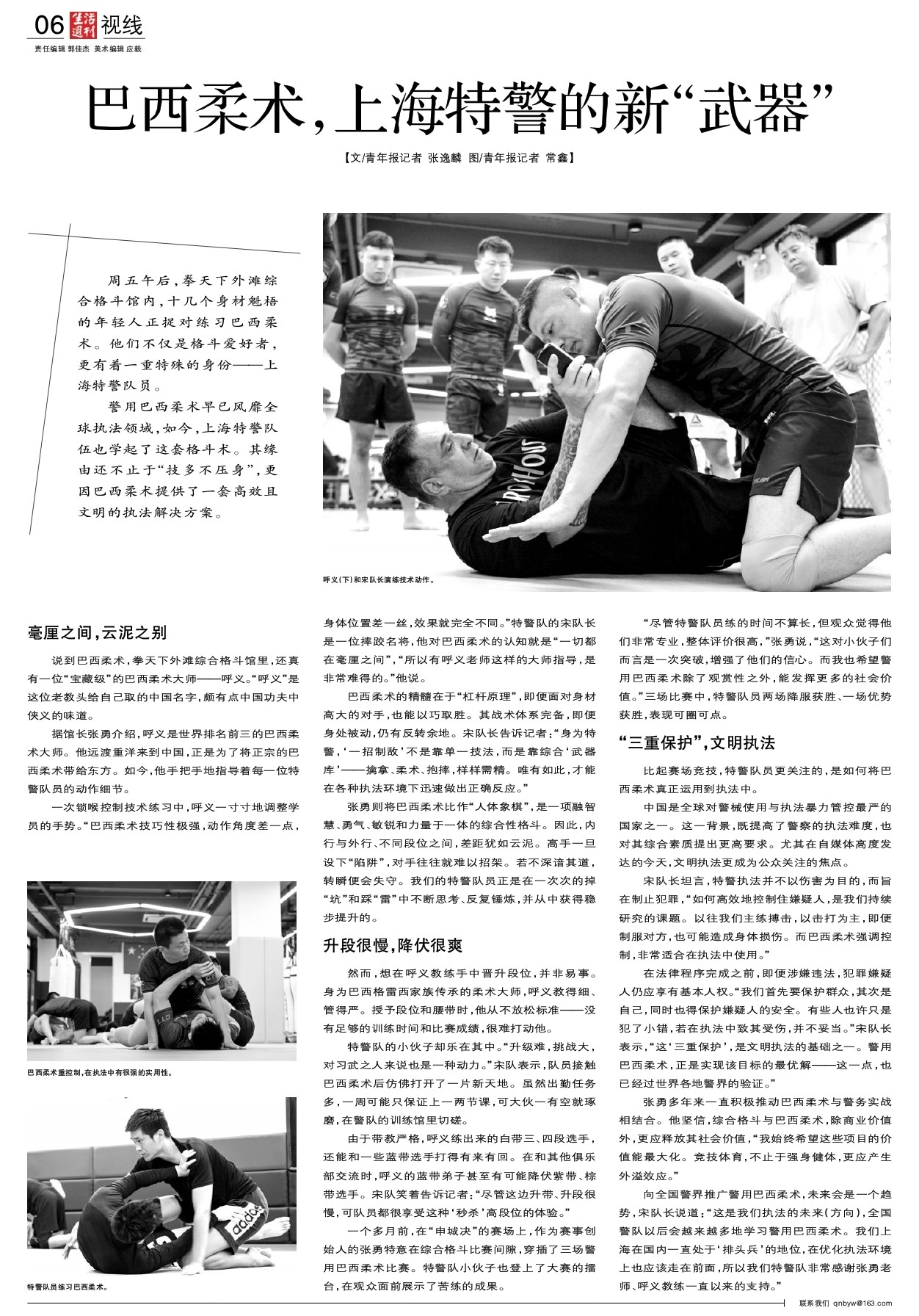 【文/青年报记者 张逸麟 图/青年报记者 常鑫】 周五午后,拳天下外滩综合格斗馆内,十几个身材魁梧的年轻人正捉对练习巴西柔术。他们不仅是格斗爱好者,更有着一重特殊的身份——上海特警