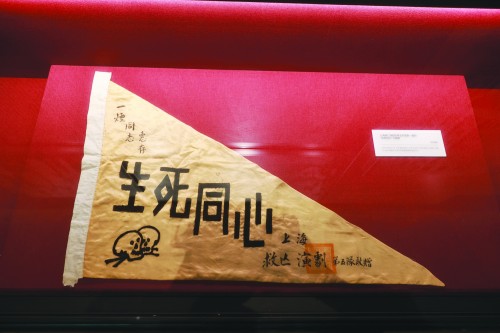 淞沪抗战纪念馆中那面“生死同心”三角旗,是上海救亡演剧队第五支队赠予著名剧作家颜一烟的。抗日战争期间,文化界的人士为宣扬全民一心、坚持抗战而奔走呼号,足迹遍布大江南北。