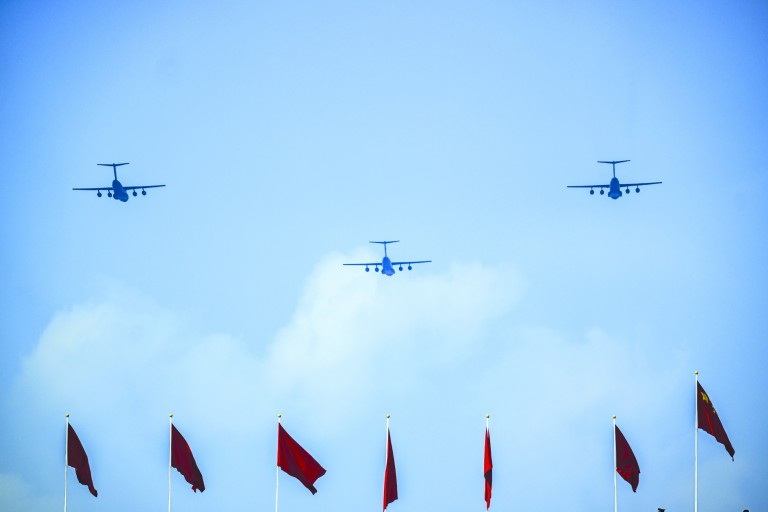 运输机梯队3日上午飞过天安门广场上空,接受祖国和人民检阅。