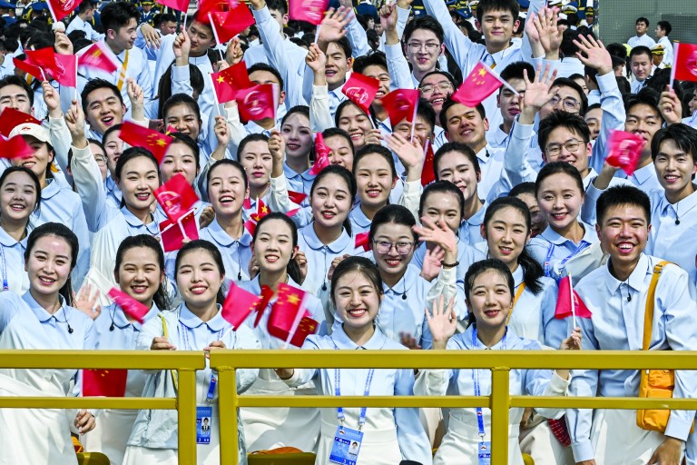 复旦大学3700余名2024级学生日前正在进行为期14天的军训。昨天,学生军训团的同学们精神昂扬,在正大体育馆集中观看纪念中国人民抗日战争暨世界反法西斯战争胜利80周年大会。随着阅兵式的进行,掌声欢呼声一次次响起。对军训团学子而言,这场抗战胜利80周年阅兵式,不仅是一场国之盛典,更是一堂震撼心灵的国防教育课。