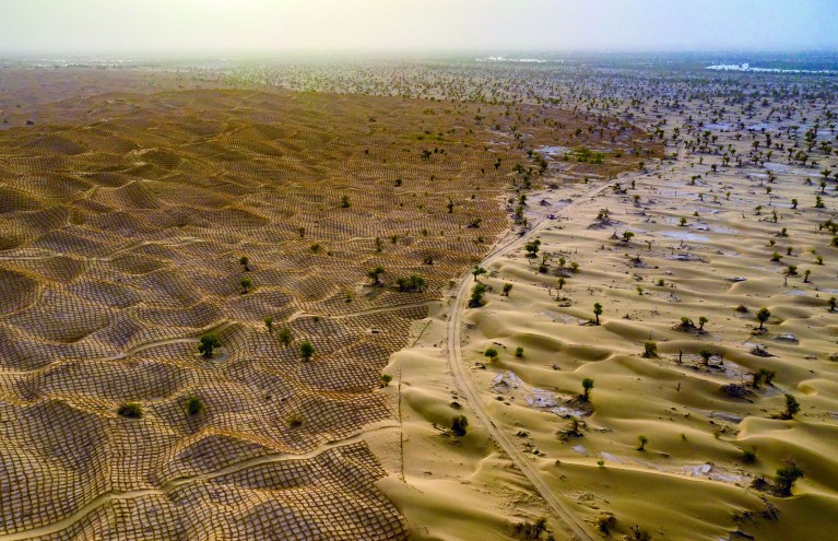 2024年11月28日,中国“三北”攻坚战的标志性工程、全长3046千米的塔克拉玛干沙漠锁边工程成功实现合龙。工程综合运用林草建设、工程固沙、光伏治沙等多种措施,突破干旱缺水、风沙活动强烈等极端环境制约,攻克风沙通道、复杂地形、困难立地等一系列技术难题,构筑起世界上最长的环沙漠绿色生态屏障,控制了沙源向外扩散,有效保护了周边绿洲、农田、草原等生态系统,改变了“沙进人退”的千年历史,为全球荒漠化治理和区域可持续发展提供了新典范。