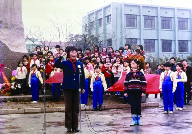 “沈功玲老师去世后,家属在整理她的遗物时,发现了一大批她珍藏的照片,其中不少都是蛮有历史价值的,于是经过沟通后,将这批照片捐赠给了我们学校。”虹口区第三中心小学党支部书记赵天山介绍说,这些照片正好是在10月13日中国少年先锋队建队纪念日捐赠的,学校也特地从中选出了一些比较重要的照片对学生进行了展示。