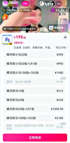 从那晚开始,看拆卡直播成了她雷打不动的深夜节目。她流连于各个直播间,体验着层出不穷的新玩法,消费金额也从每单几元,悄然涨到几十元、几百元,直到突破千元。