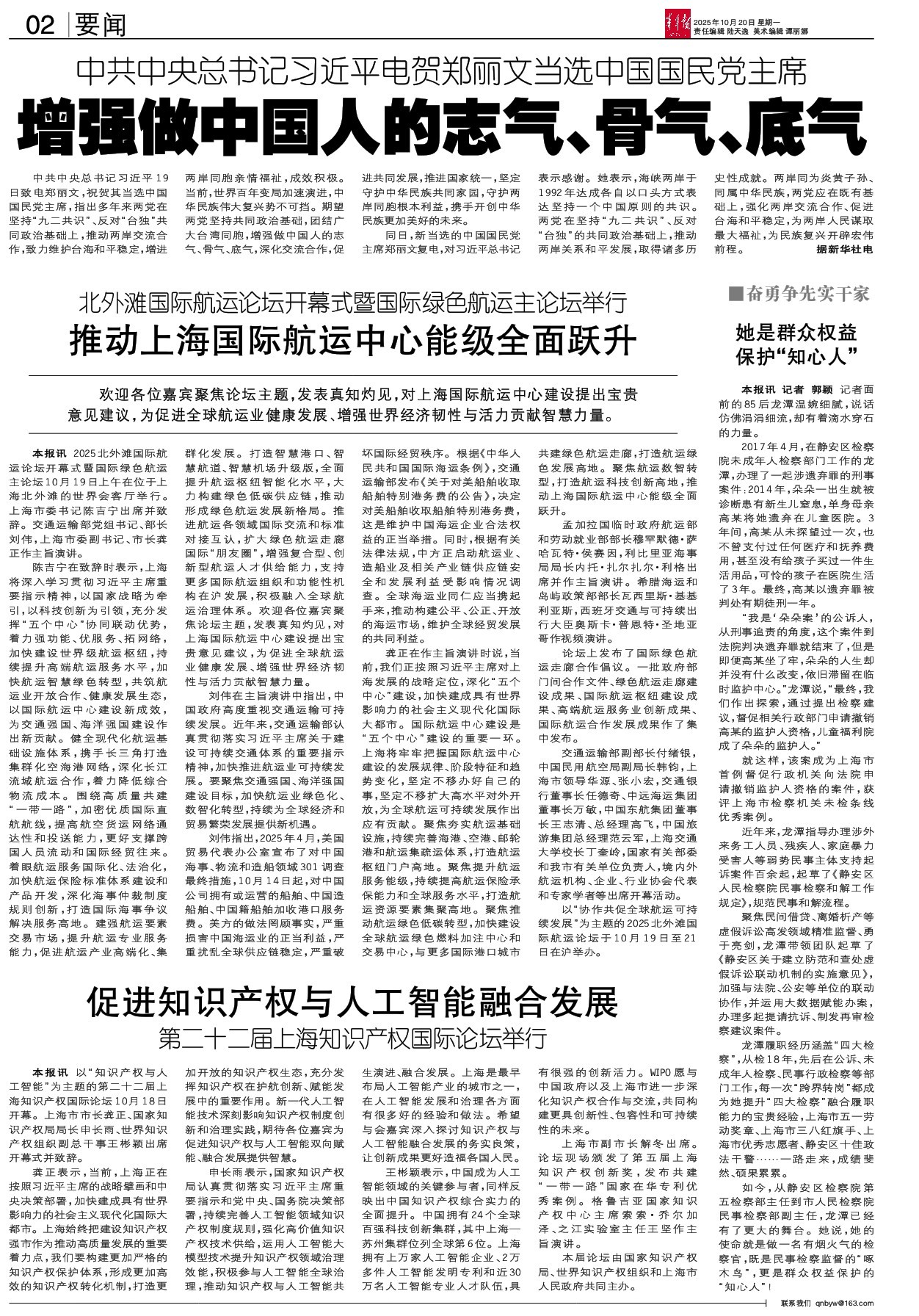 - 促进知识产权与人工智能融合发展 本报讯 以“知识产权与人工智能”为主题的第二十二届上海知识产权国际论坛10月18日开幕。上海市市长龚正、国家知识产权局局长申长雨、世界知识产权组织副总干事王彬颖出席开幕式并致辞。