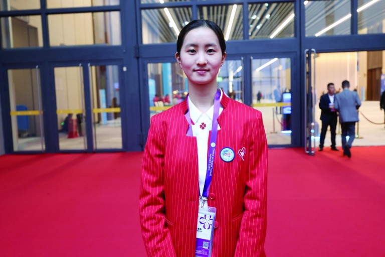 “南厅咨询台处,几乎是离会场门最近的一个服务岗。我主要给需要问询的嘉宾提供指引。”她回忆,一名嘉宾在自助摄影机前操作不顺,请她帮忙拍摄,“他给了我很多表扬,大家都很友善,也很想在这样开放的舞台上定格珍贵的时刻。”