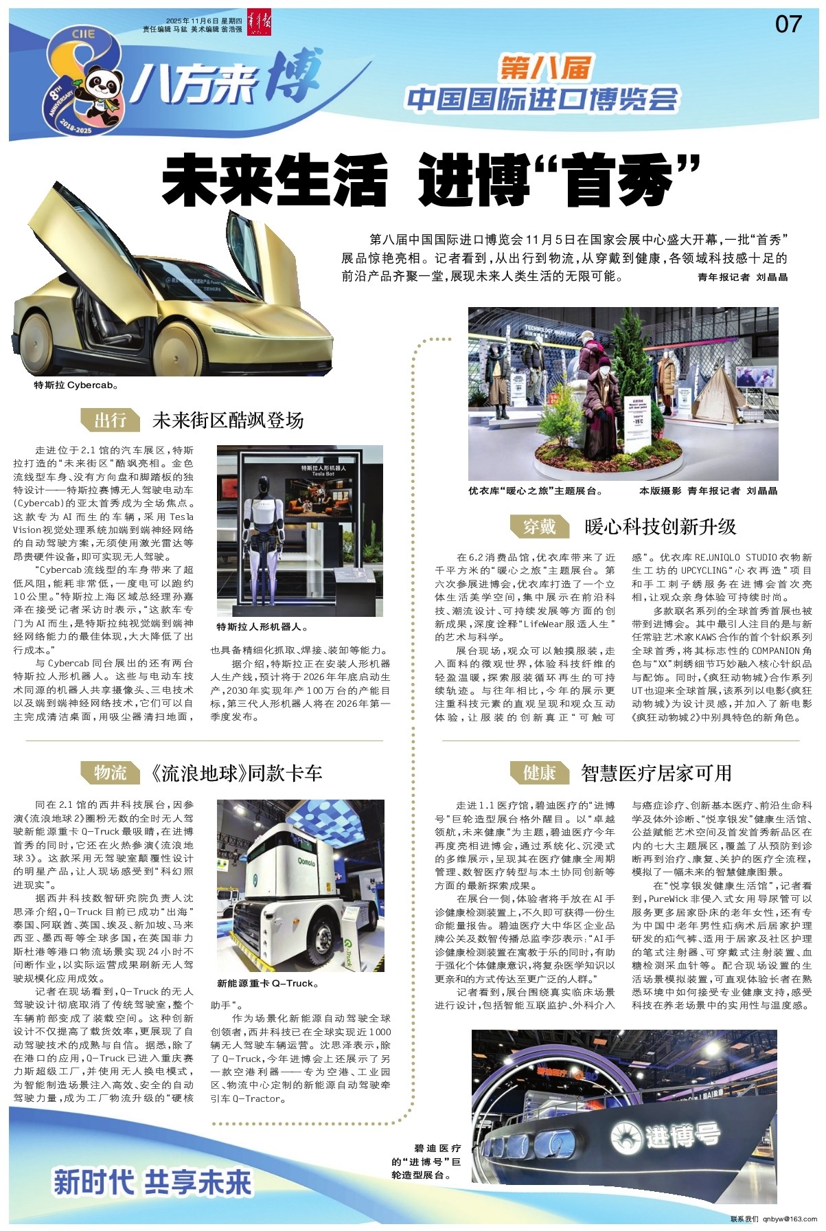 第八届中国国际进口博览会11月5日在国家会展中心盛大开幕,一批“首秀”展品惊艳亮相。记者看到,从出行到物流,从穿戴到健康,各领域科技感十足的前沿产品齐聚一堂,展现未来人类生活的无限可能。