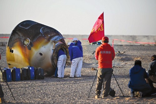14日16时40分,神舟二十一号载人飞船返回舱在东风着陆场成功着陆。返回舱舱门打开后,神舟二十号航天员陈冬、陈中瑞、王杰安全顺利出舱,健康状态良好。