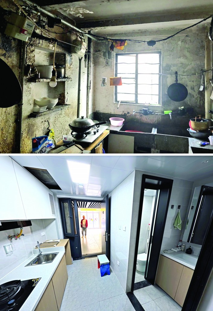 再次回家,居民傻了眼:从“拎马桶”到“拎包住”,从“三户合厨”到“一户一套”,通过旧住房拆除重建,两幢老楼原拆原建变成了一幢8层的现代化住宅,建筑面积扩展到约8000平方米,每户增加套内独用厨卫设施及小型阳台,所有住宅“全装修”交付。