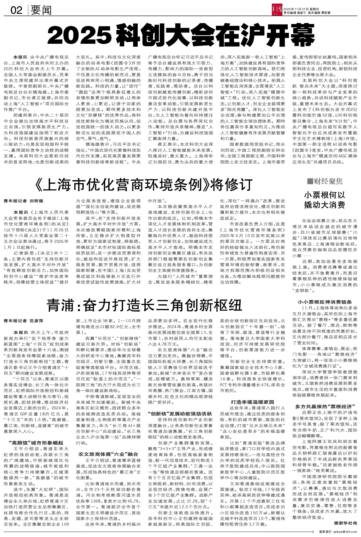 - 2025科创大会在沪开幕 本报讯 由中央广播电视总台、上海市人民政府共同主办的2025科创大会昨天上午开幕。全国人大常委会副委员长、民革中央主席郑建邦出席开幕式并致辞。中宣部副部长、中央广播电视总台台长慎海雄,上海市