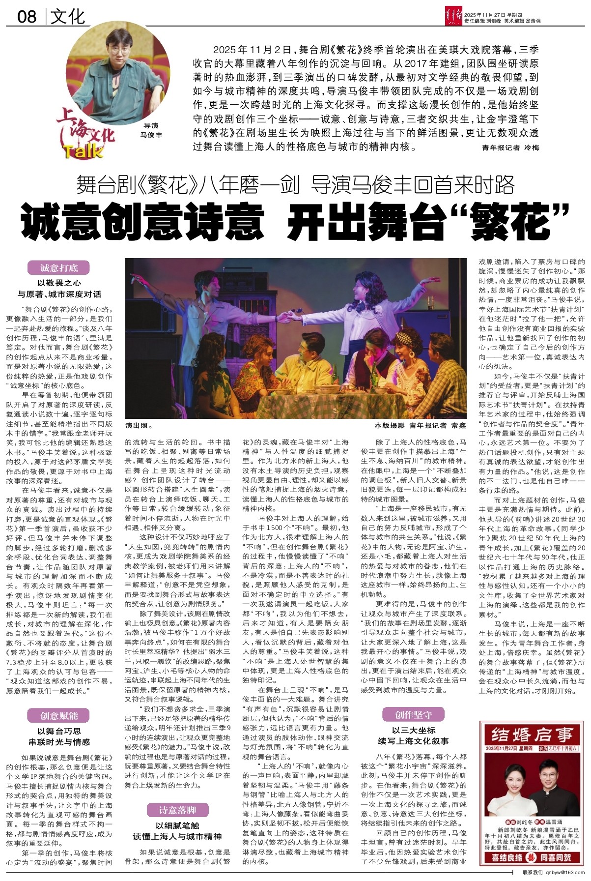 诚意创意诗意 开出舞台“繁花”