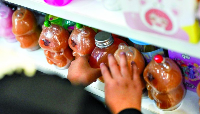 在山西省太原市一所学校周边,记者随机拿起一个外形夸张、颜色鲜艳的“小丑捏捏”,发现其手感黏腻,味道刺鼻。“有味道正常,稍微晾一下就好。”商店老板向记者介绍,“‘捏捏’很畅销,几乎每天都被孩子们一抢而空。”