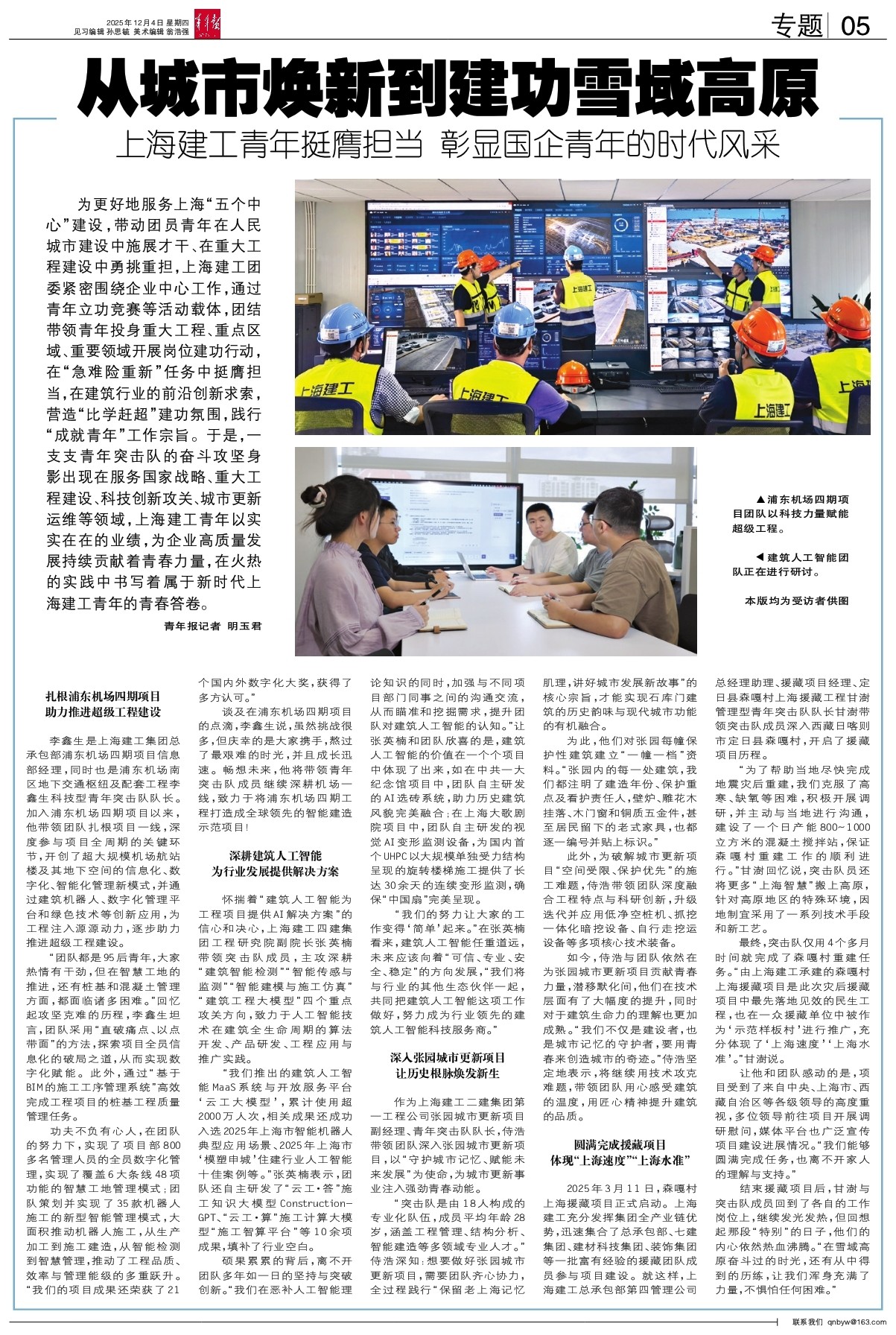 为更好地服务上海“五个中心”建设,带动团员青年在人民城市建设中施展才干、在重大工程建设中勇挑重担,上海建工团委紧密围绕企业中心工作,通过青年立功竞赛等活动载体,团结带领青年投身重大工程、重点