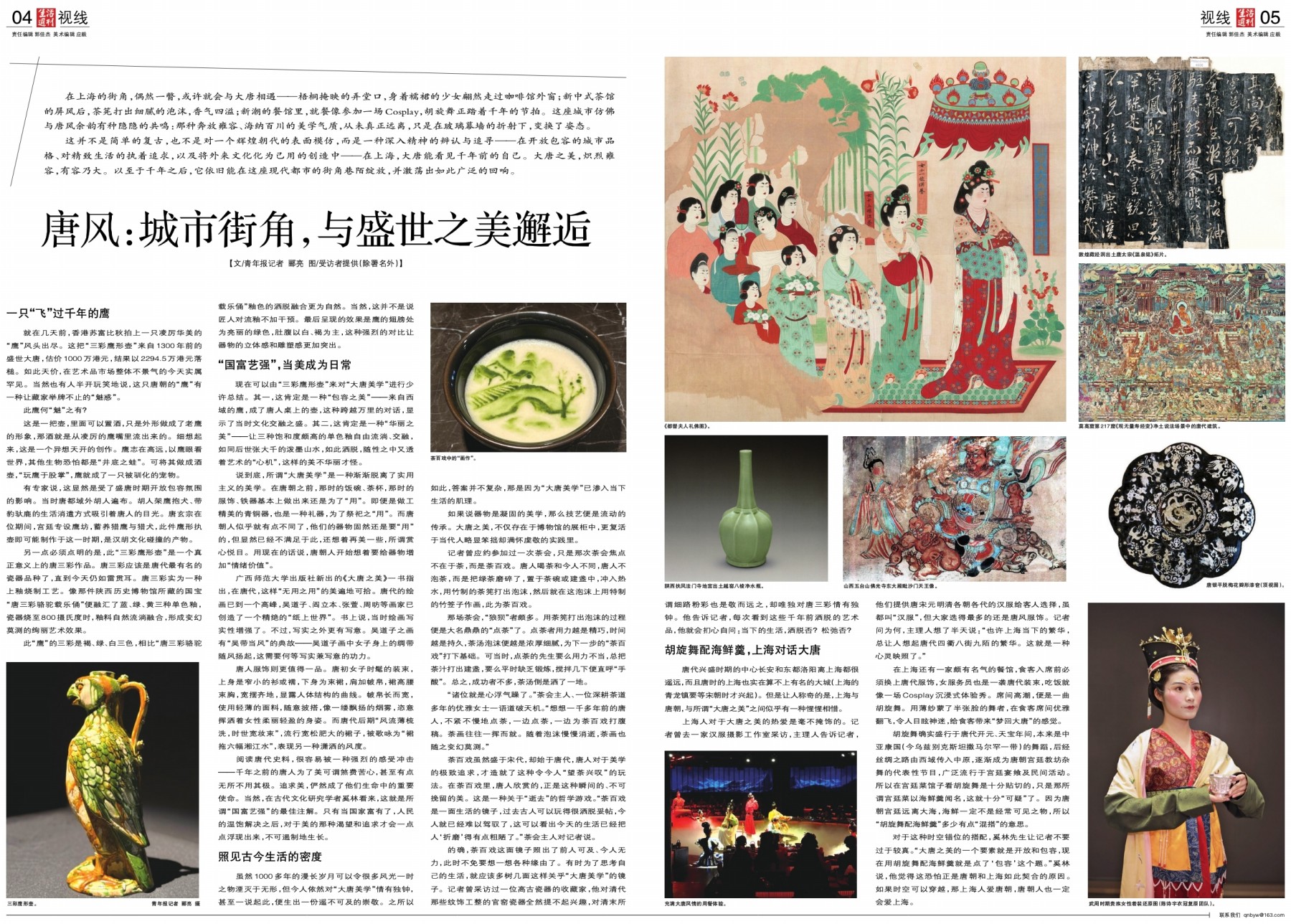 【文/青年报记者 郦亮 图/受访者提供(除署名外)】 在上海的街角,偶然一瞥,或许就会与大唐相遇——梧桐掩映的弄堂口,身着襦裙的少女翩然走过咖啡馆外窗;新中式茶馆的屏风后,茶筅打出
