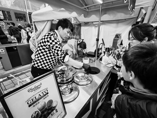 虽恰逢申城降温,但巧克力市集人气不减。“我最喜欢吃巧克力了,心情不好的时候来一块,就没有烦恼了。”孙小姐和闺蜜一起来品尝巧克力,顾不上热量超标,手捧巧克力热饮,驱散冬日寒意。由于点单的人太多,不少铺位还需要排队等候。