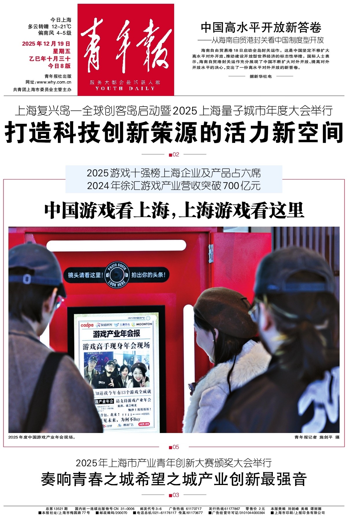 - 2025年12月19日 星期五 乙巳年十月三十 今日8版 青年报社出版 网址:www.why.com.cn 共青团上海市委员会主管主办