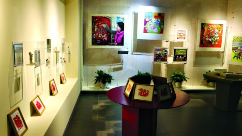 中心二楼设有常换常新的主题展,当前正展示精美的蛋雕艺术。这些作品的创作者,上海市级非遗蛋雕代表性传承人李亚非,是一位在脆弱蛋壳上雕刻世界的匠人。“做蛋雕是小众的,但长宁非遗中心非常重视。”他说道。