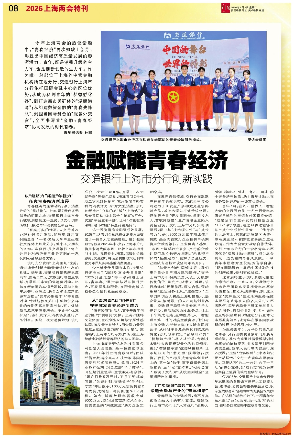 今年上海两会的热议话题中,“青春经济”再次如破土新芽,彰显出中国经济高质量发展的澎湃活力。青年,既是消费升级的主力军,也是创新创造的生力军。作为唯一总部位于上海的中管金融机构所在地分行,交通