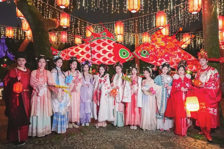 贯穿老园区的华灯巡游更是不容错过。华灯队伍伴着悠扬乐声缓缓前行,流光溢彩的灯组与古园的亭台水榭、古树名木交相辉映,形成一幅流动的国风画卷。游客可跟随巡游队伍,沉浸式感受元宵夜的浪漫意境,拍下专属国风大片。