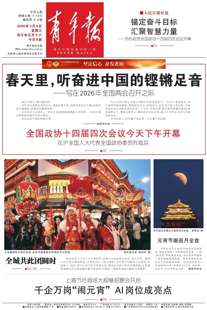 - 2026年3月4日 星期三 丙午年正月十六 今日8版 青年报社出版 网址:www.why.com.cn 共青团上海市委员会主管主办