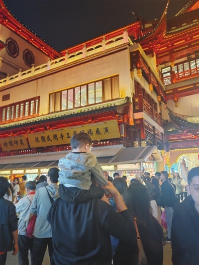 在城隍庙,记者同样发现了许多带着孩子来玩的游客。王先生一家是安徽人,因为孩子放春假了,所以他们一家人专程来上海旅游。“小孩很喜欢迪士尼的很多IP,上海离得近,所以就来上海玩了。”王先生说,除了迪士尼,他们也会兜兜看看豫园等有上海特色的旅游景区。