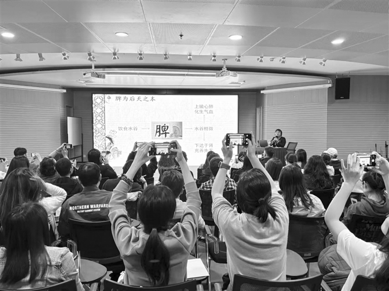 “我原本以为中医课会枯燥难懂,没想到老师讲得像侦探故事一样引人入胜,不知不觉就听完了一整节课。”课后,学员依旧意犹未尽,纷纷围在讲台前,向授课医生咨询各类日常养生问题。