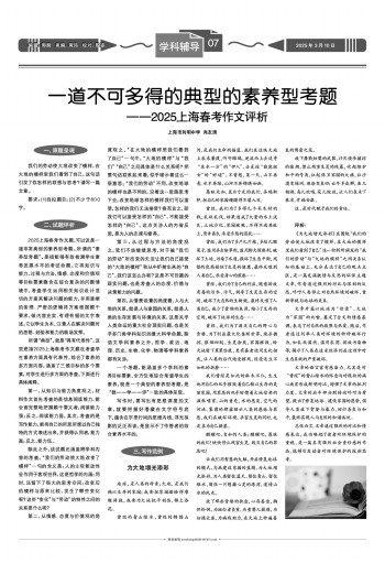 所谓“典型”,就是“具有代表性”,这里是指2025上海春考作文题在考查学生素养方面具有代表性,综合了素养的多方面内容,涵盖了三维目标的多个要素,对学生进行多方面的考查。下面进行具体阐释。