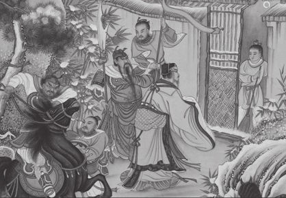 东汉末年,刘备广纳人才,想完成统一中国的大业。他听说在隆中卧龙冈隐居的诸葛亮是个奇才,就去请他出山。一连去了两次,诸葛亮都不在家。第三次,诸葛亮正在屋里睡觉,刘备站在院里等候,直到诸葛亮醒来。诸葛亮被感动了,答应出山相助。后来,刘备在诸葛亮帮助下建立了蜀国。