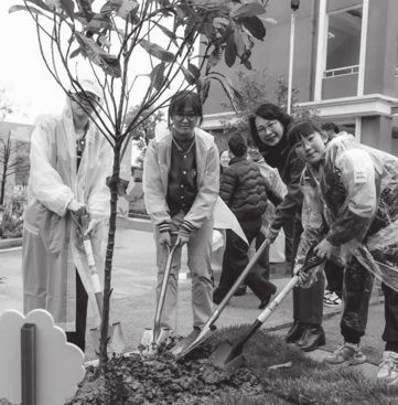 迎着春雨,穿越青绿拱门,师生手持药锄,共同种下一棵棵象征中医药文化薪火相传的杏树,愿来年杏花香飘满园。位于附属浦东鹤沙学校的这一百草园占地962平方米,规划为8个区域,将会分别种青蒿(黄花蒿)、佩兰、板蓝根等8种中药材,上海中医药大学将联动多方资源把百草园打造成开放式实践课堂,成为大中小学生劳动实践和自主管理的试验田。