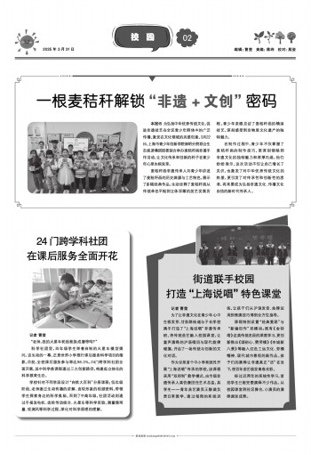 本报讯 为弘扬中华优秀传统文化,促进非遗技艺在全区青少年群体中的广泛传播,激发在文化领域的灵感创意,3月22日,上海市青少年创新学院崇明分院联合生态旅游集团团委联合举办麦秸秆画非遗手作活动,让文化传承和创新的种子在青少年心里生根发芽。