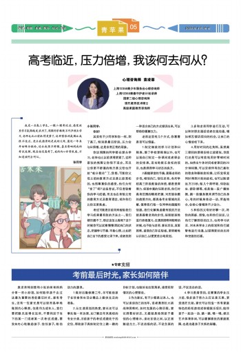 袁老师特别想和小张的爸爸妈妈分享一些小妙招,如何陪伴孩子走过这最为重要的考前最后时光。家有考生,没有一位家长是可以轻而易举地做到内心释然。但是作为成年人,我们要把眼光放得长远些,不要拘泥于当下的某一门或者某一次考试成绩,要发自内心地鼓励孩子、信任孩子,给他动力的源泉。