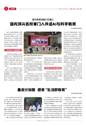 活动中,与会嘉宾参观了上海市陶行知纪念馆,通过丰富的史料与珍贵的实物,深刻感悟陶行知教育思想的深刻内涵。在上海市行知实验中学,嘉宾探访1947年育才学校迁沪后留存的行知育才旧院;走进艺术中心与行创楼,亲身体验核雕、AI编程等特色课程,感受“生活即教育”“教学做合一”理念在当代的生动实践。