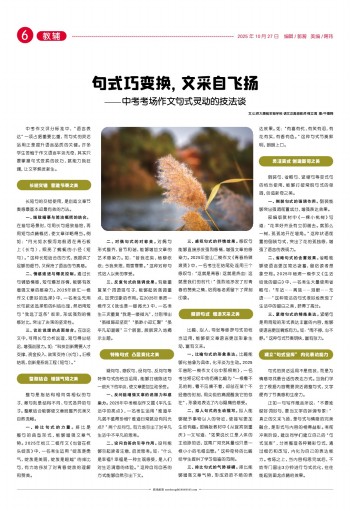 正如一句写作箴言所说:“不要堆砌好词好句,要当文字的拆弹专家!” 真正的文采飞扬,是句式与情感的完美融合,是形式与内容的相得益彰。考前冲刺阶段,建议同学们建立自己的“句式宝库”,分类整理各种精彩句式,通过模仿和改写,内化为自己的表达能力。考场之上,当内容构思完成后,不妨专门留出3分钟进行句式优化,往往能起到画龙点睛的效果。