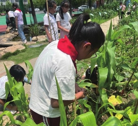永兴路二小的这个“稻梦天地”劳动实践基地,既有种植各种蔬菜的班级田,也有稻田,还有种植蔬菜和中草药的校级种植田。即便是暑假期间,孩子们也冒着高温来到这里养护种植的各种农作物,他们有的拔除杂草,有的给干旱的植物浇水,还有的仔细观察叶片,看看是否有害虫的踪迹。